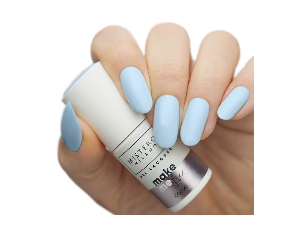 Gelový lak Make me Dreamy je perfektní volbou pro milovníky jemných pastelových odstínů, kteří chtějí zdůraznit svůj dívčí půvab a cítit se bezstarostně. Modrá hybridní manikúra se skvěle hodí k letním stylizacím, kterým dodá jemný šarm a svěžest.