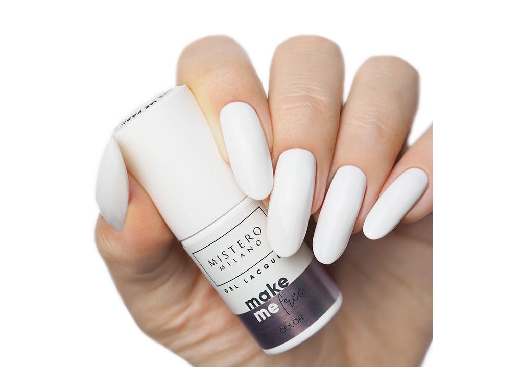 Bílý gel lak vypadá perfektně jako hlavní hvězda manikúry a dokonale ladí s jakýmkoliv odstínem pleti i outfitem. Tento základní produkt se bez problémů hodí k jakémukoliv jinému odstínu gelového laku. Chcete mu dodat trochu lesku? Použijte jakýkoliv třpyt podle svého výběru. Efekt mořské panny v kombinaci s bílou? Zní to skvěle!