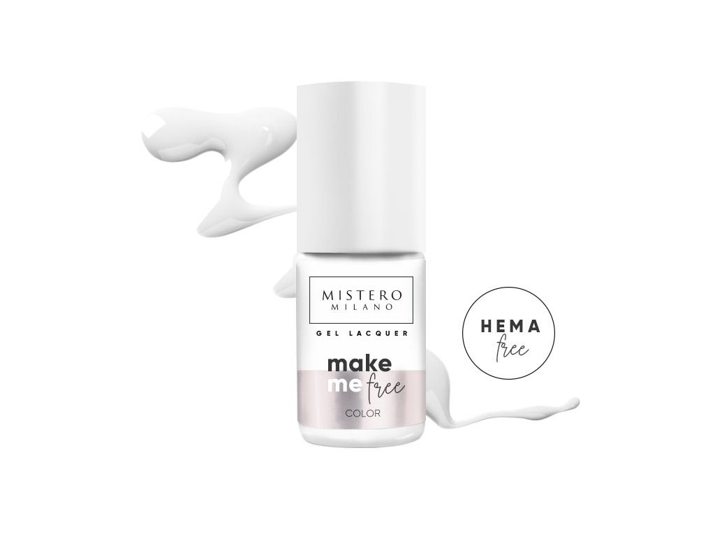 Kolekce Make Me Free zahrnuje gelové laky vytvořené podle Hema Free formule. Jedná se o inovativní přístup ke stylizaci nehtů, který umožňuje snížit riziko alergií. Naše gelové laky navíc využívají formuli Solvent Free, což znamená, že ve složení nenajdete žádná rozpouštědla. Tato technologie zajišťuje delší uchování výjimečné vitality produktu při zachování nejžádanější konzistence, která umožňuje plné krytí ve dvou tenkých vrstvách.