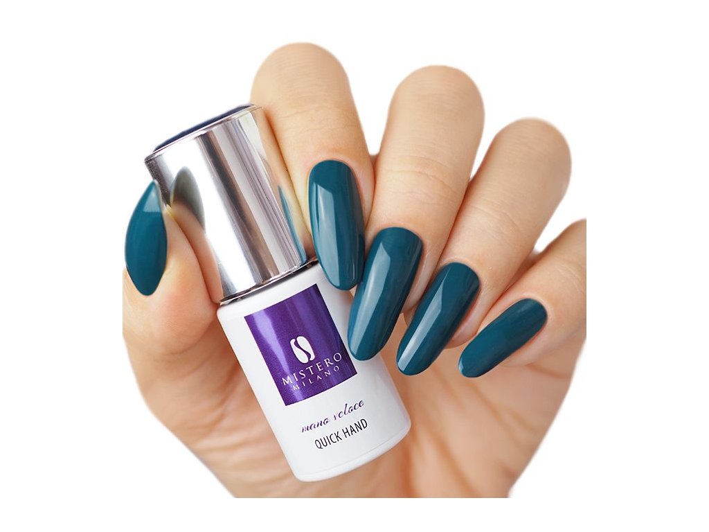 Quick Hand je ideální volbou pro ženy, které hledají elegantní hybridní manikúru v neotřelých barvách. Tento odstín si jistě oblíbí dámy, které se rády zahalí do závoje tajemství a neodhalují všechny své karty. Lahvově zelená hybridní manikúra podtrhne vaši osobnost a nezávislost.