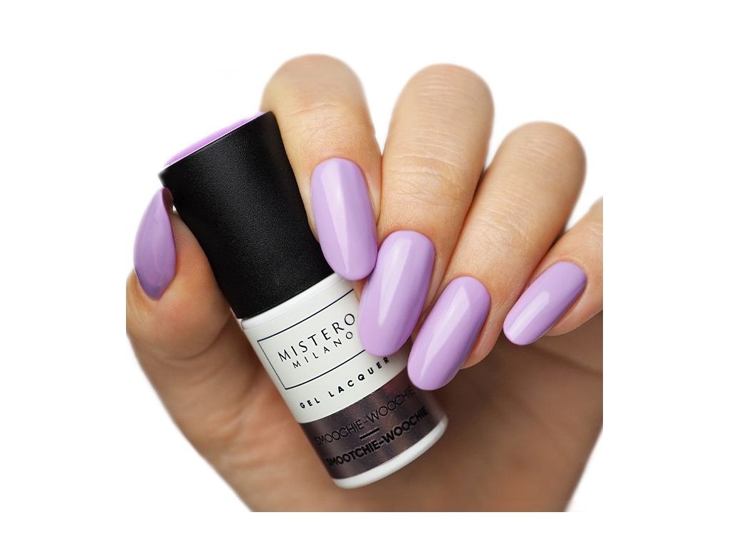 Gel lak Smootchie-woochie je ideální pro ženy, které milují uměleckou hybridní manikúru. Všechny dámy, které si chtějí konečně užít víkendové lenošení, si tuto barvu zamilují. Pastelová fialová hybridní manikúra bude perfektním doplňkem k barevným jarním outfitům – odvažte se a zkuste neobvyklé kombinace!